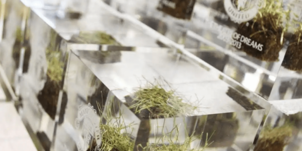 At Midton’s Scottish acrylic foundry, turf sections were professionally preserved and embedded into optically clear cast acrylic using specialist pressure-casting techniques. Each piece was then precision finished and branded for presentation quality.