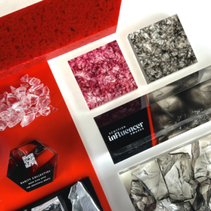 At the core of the design was Midton’s Remade recycled acrylic — not hidden, but celebrated. By pushing the casting process, we introduced: